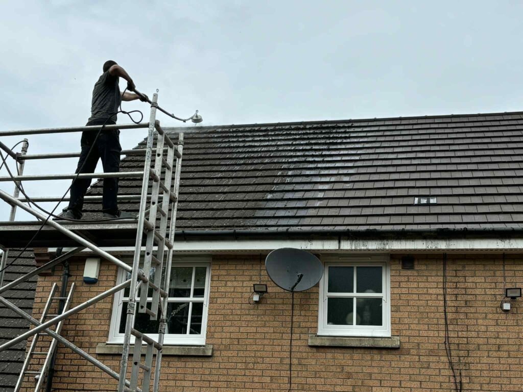 Roof cleaning is one of the most important steps in protecting your home from long term damage. Moss, algae, and lichen trap moisture and weaken roofing materials. We use safe, proven cleaning methods to remove biological growth, clear debris, and improve the overall condition of your roof. A clean roof looks better, performs better, and extends the lifespan of your property’s most important structure. We serve homes in Glasgow and all surrounding regions across Scotland.